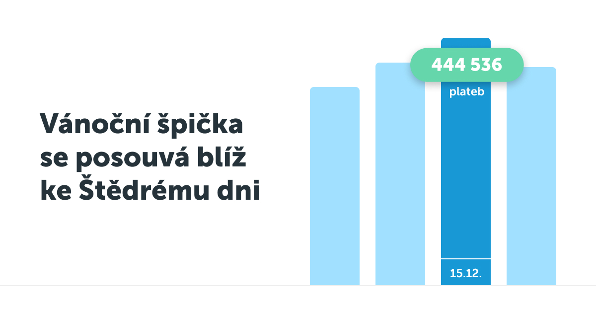 Nejsilnějším dnem sezóny se stalo pondělí 15. 12. 2025 s objemem 444 536 plateb. O rok dříve padl vrchol 12. prosince s 433 381 platbami. Poslední čtyři roky (2021–2024) přicházel vánoční vrchol vždy mezi 12. a 13. prosincem. Rok 2025 tak představuje první významnější posun za dlouhé období, a to směrem k pozdějšímu datu.